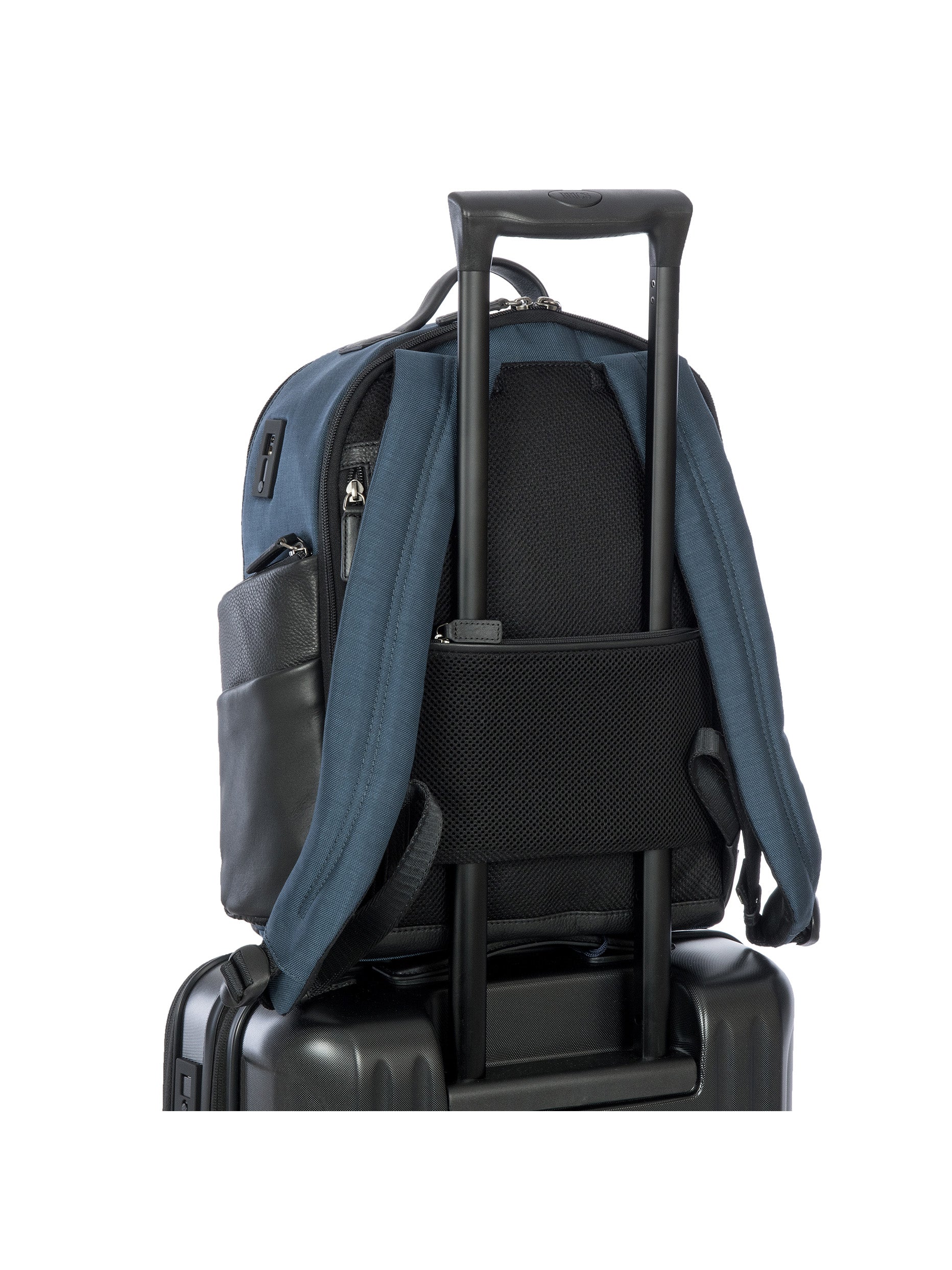 totally breathable back part with padded strap for storing on trolley handles and security pocket with zip fastening