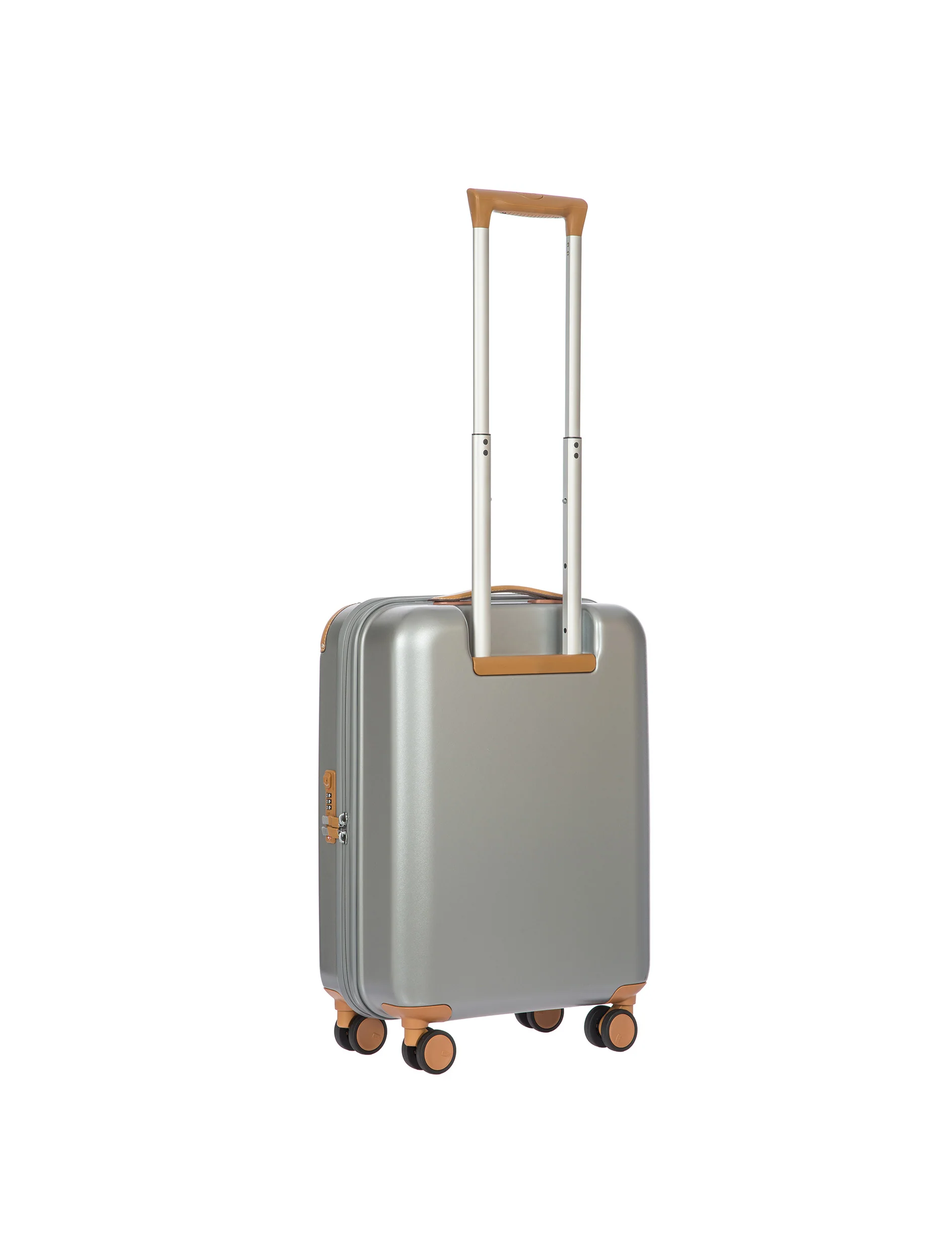 This cabin trolley is made of recycled polycarbonate, a lightweight, flexible, ultra-durable material. A double-slide zip, with a rubberised finish that makes it water-repellent, opens the suitcase. Integrated TSA lock. The four swivel wheels move quietly and rotate a full 360° for guaranteed manoeuvrability, equipped with ball bearings that create an impressively smooth ride. The wheels are recessed to maximise the bagās carrying capacity. On the inside, the suitcase is divided into two separate compartments so that every trip is perfectly organised. Fabric lining. To ensure comfort and ease of use, the top handle in real leather is padded, and the retractable handle is made up of robust, sturdy aluminium tubes with intermediate stop positions and an ergonomic grip. The trolley is trimmed by Bricās distinctive real leather details, and by refined logo details.