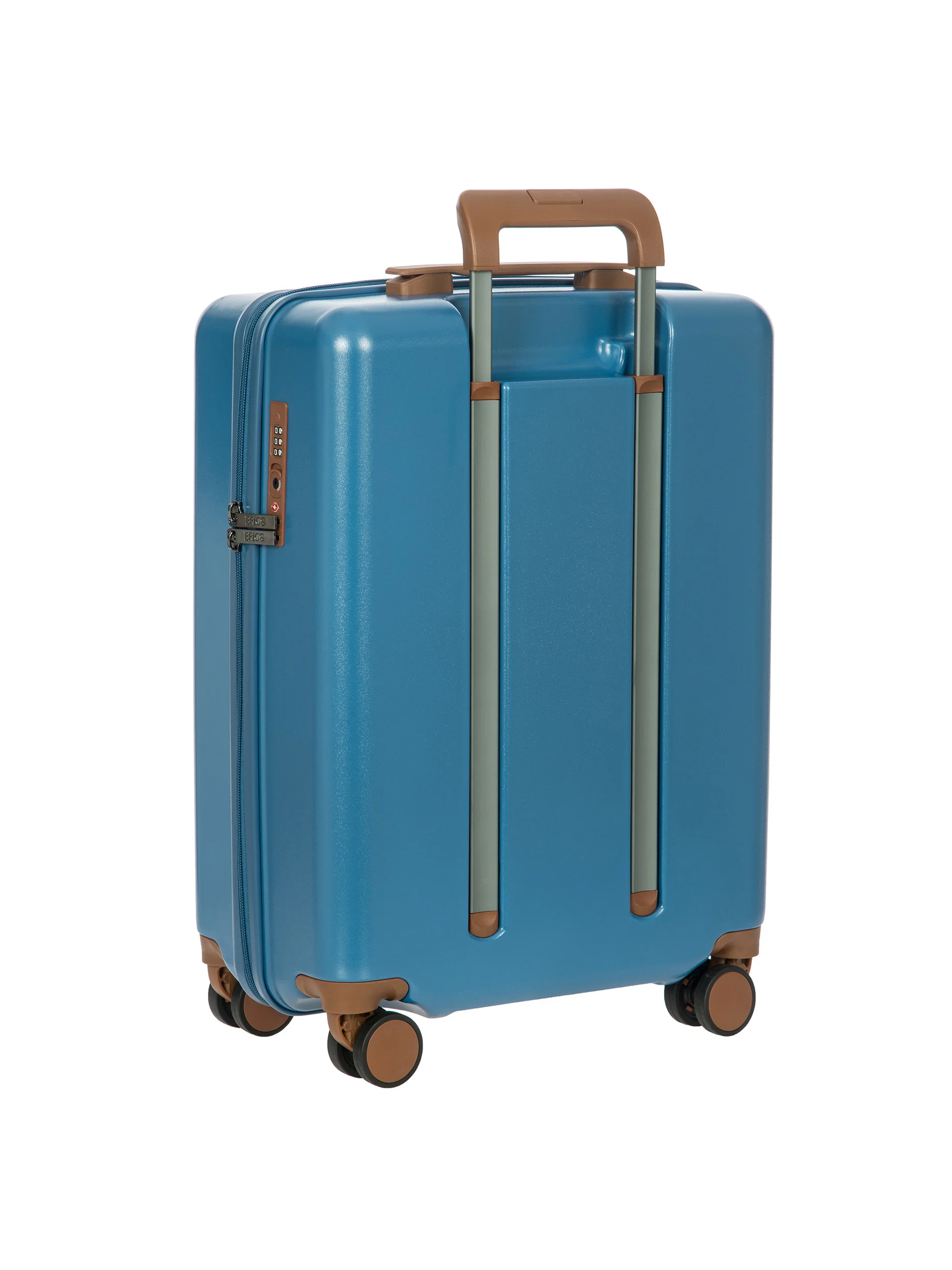 The Ferrara Collection cabin trolley is made of polycarbonate, a lightweight and durable material. The opening has a double-slider zipper, embellished with a tone-on-tone finish. The TSA padlock is integrated. The four wheels are silent and swivel to ensure smooth 360° movement. They are also recessed to maximise trolley capacity. Internally, the trolley has a zippered pocket and is divided into two separate compartments to help organise your belongings. Finished with a fabric lining. For ease of use, the towing system consists of strong and stable, multi-stop aluminium tubes with ergonomic grip. The trolley is embellished with Bric's refined logo.