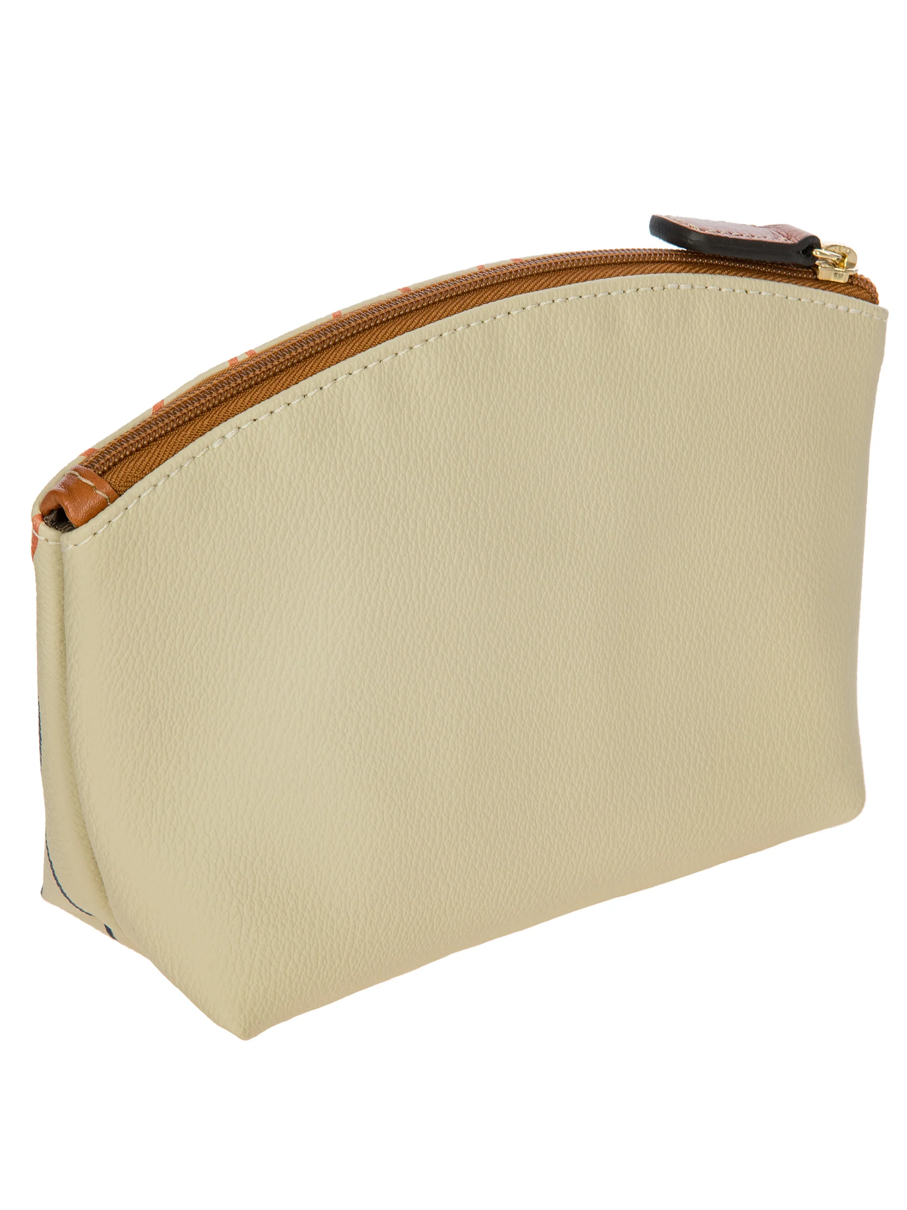 From the collection Como, this small cosmetic case was designed and made in Italy. Made of a soft material which features an embossed surface, itās water-resistant and easy to clean. Closed with a zip, fabric lines the inside, while the outside is trimmed in real leather details.