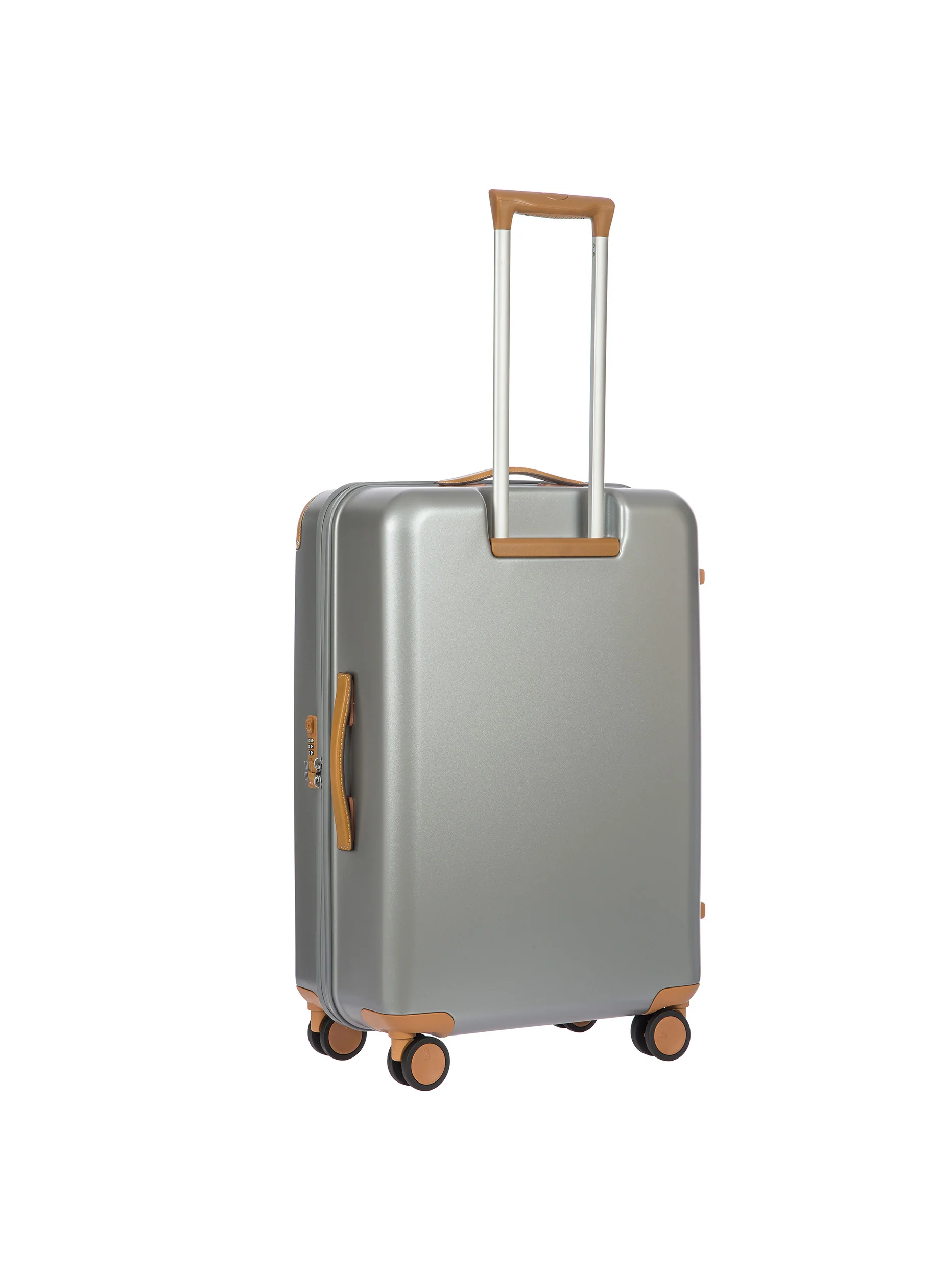 This medium trolley is made of recycled polycarbonate, a lightweight, flexible, ultra-durable material. A double-slide zip, with a rubberised finish that makes it water-repellent, opens the suitcase. Integrated TSA lock. The four swivel wheels move quietly and rotate a full 360° for guaranteed manoeuvrability, equipped with ball bearings that create an impressively smooth ride. The wheels are recessed to maximise the bagās carrying capacity. On the inside, the suitcase is divided into two separate compartments so that every trip is perfectly organised. Fabric lining. To ensure comfort and ease of use, the real leather handles are padded, and the retractable handle is made up of robust, sturdy aluminium tubes with intermediate stop positions and an ergonomic grip. The trolley is trimmed by Bricās distinctive real leather details, and by refined logo details.