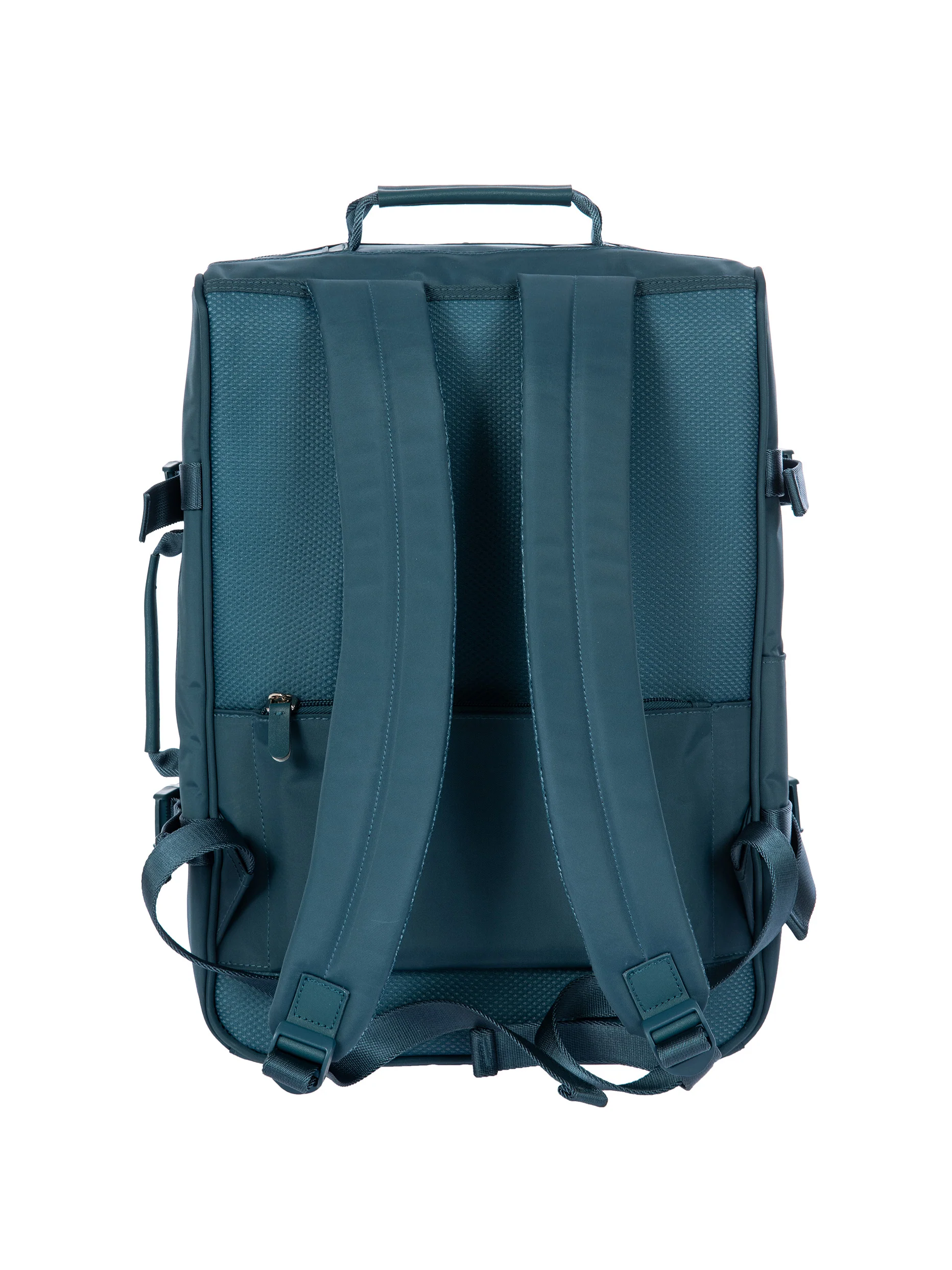 The Positano Underseat Soft Backpack - even more outstanding in this monochrome version - complies with the majority of air carriersā limitations. Ideal as a weekender bag, on business trips or leisure travel. The backpack is made from recycled, waterproof, and easy-to-clean fabric. Divided into two compartments protected by a double-slider zip: one holds a padded computer pocket, while the other is an exceptionally roomy and organized space. The strap on the back can be used to attach the bag to a trolley handle, with a zipped pocket to store your valuables in. Handy and practical shoulder straps and side handles. With Bric's signature genuine leather details. The colours can be combined with the Positano Trolley Collection in recycled polycarbonate with gloss finish.