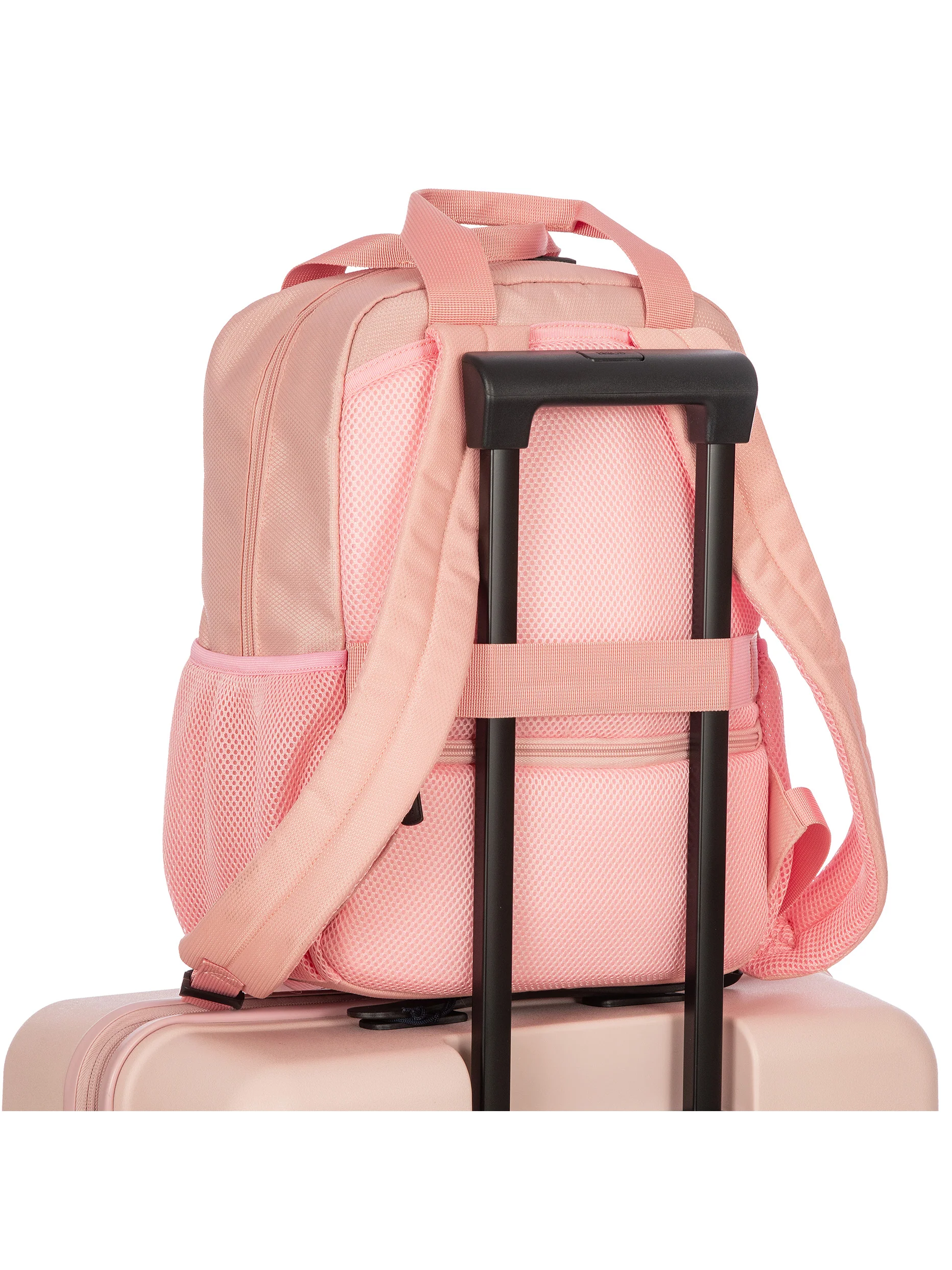 The backpack from the B|Y collection made of water resistant recycled fabric contains everything you need for your workday or a short trip out of town, combining practicality and style. Particularly lightweight and durable, on the outside it features a graphic design reminiscent of a subway map. Equipped with a spacious main compartment and padded laptop and tablet pockets with security closure. Externally it has convenient side storage pockets, and the hidden zippered pocket on the back can be used to hold valuables. There is also a strap on the back for attachment to the trolley handle. Handles on the top make it easy to carry by hand.